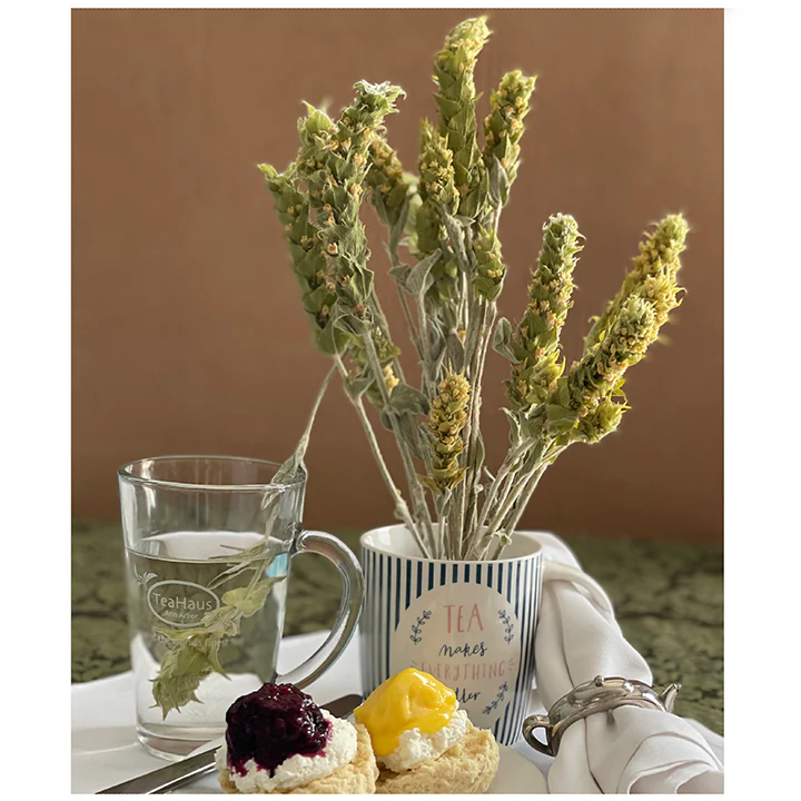 Preparation for Greek Mountain bouquet: Submerge one stalk in filtered boiling water; brew for 5–10 min.